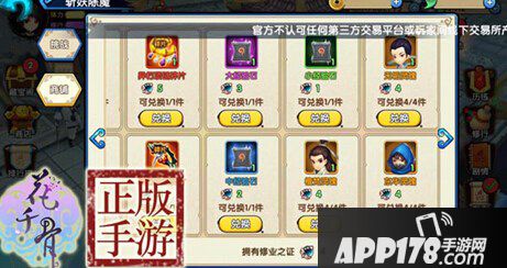 斩妖除魔商铺中可以用修业之证兑换异朽项链碎片、异朽戒指碎片,霓漫天灵魄、孟玄朗灵魄、檀梵灵魄、无垢灵魄、东华灵魄,小经验石、中经验石、大经验石。