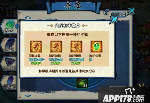 和平模式:模式下可以进行低概率抢夺,高概率抢夺会定去【免战令】效果!在和平模式下玩家是无法对你进行抢夺,也就是说你可以抢夺低概率玩家,但是其他玩家无法抢夺你。