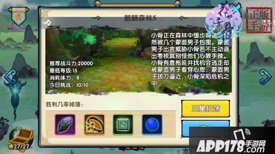 通过对关卡的扫荡可以获得绿、蓝、紫、橙、红,四个品阶的装备。