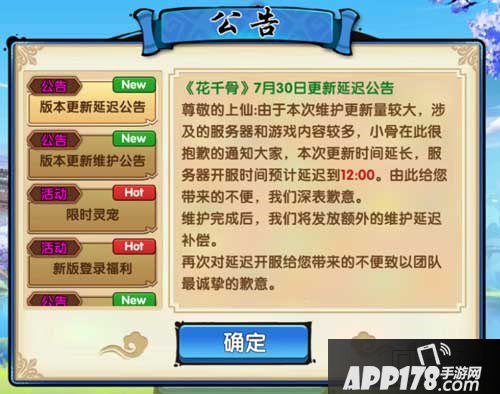 花千骨手游新版本下载后会发现游戏还是在维护中,目前官方发布了最新的维护延迟公告,玩家需要到12:00左右才可以顺利登陆,下面是公告原文。