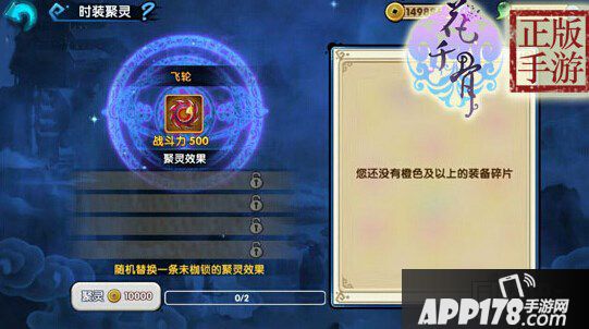 1、 时装每次进行聚灵时需要消耗一定的橙色及以上品质的装备碎片和10000金币,每次将随机获得一条属性。