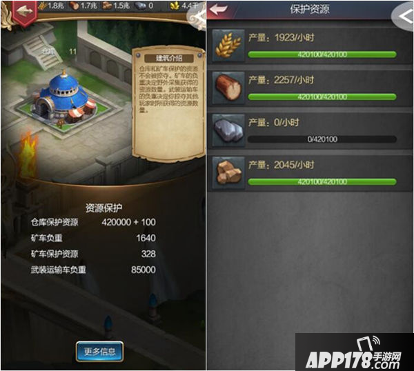 在战胜怪物或者征讨敌军胜利后就可以开始采集资源了。采集的速度取决于城内魔法学院的科技水平和仓库的仓储水平。科技水平决定了矿车的数量,仓储水平决定了矿车的负重能力。