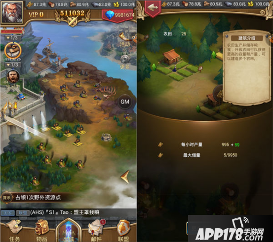 首先,王者远征里的资源分为粮食、木材、石头、铁和金矿。可以依靠主城建筑农田、伐木场、采石场、铁矿和金矿来相应产出。城堡1级时便可以开放农田、伐木场、采石场三种资源建筑,随着城堡的等级提升,会解锁开放相对高级的铁矿场和金矿产。而建造的资源建筑数量和等级与城堡等级息息相关,更高等级的资源建筑也会提高相应资源的产出速度和储存上限。