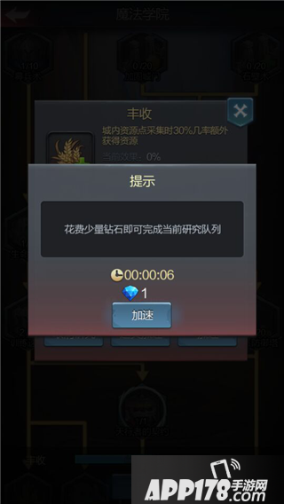 科技树的研究涵盖了加快生产、加强城防、战斗增强等效果。科技是第一生产力,所以魔法学院的重要性不言而喻。但越高级的科技就需消耗越多钻石来立即完成,所以还是那句老话,可以乘着前期花费少来积累不少优势。