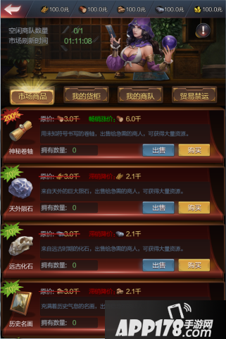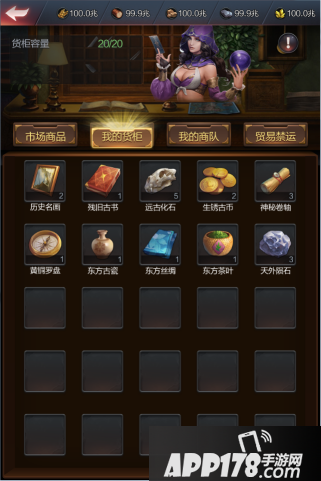 (5)我的货柜:玩家存放市场货物的地方,玩家购买的市场货物都会先存放到玩家货柜。货柜有容量限制,容量随市场等级提升。货柜中的货物数量超出容量限制时,便不可以在市场买入货物。