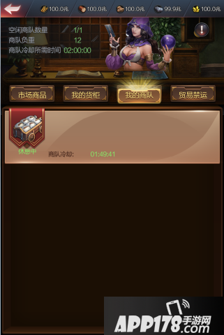 c:商队冷却时间:商队每次派出后,都会在一定时间内不能再被派出。商队开始行军冷却时间便开始倒计时。商队冷却时间随着市场等级提升而减少。