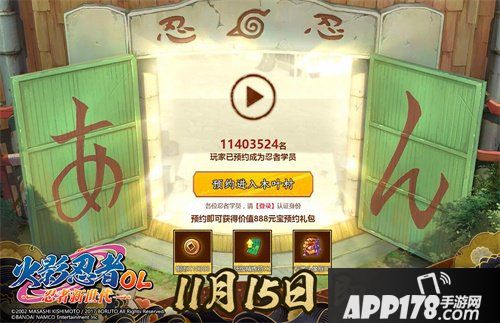 新生代忍者助力,守护最初的羁绊!《火影忍者OL》手游11月15日面世。千万火影粉丝已经汇聚于此,与你约定《火影忍者OL》手游不见不散!