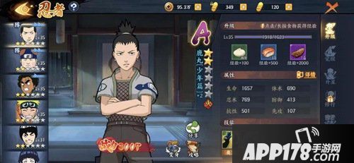 奥义【影子模仿术】带定身效果,普攻【体术攻击】一定概率造成倒地,追打【影子刺身术】带定身,被动【查克拉恢复】战斗开始时,恢复20查克拉。前期最实用忍者,没有之一。