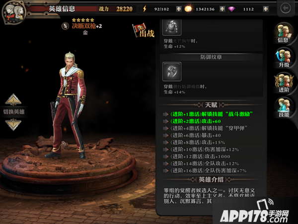 英雄达到限定的等级后可以消耗生命之源和英雄碎片等材料进行进阶,英雄进阶在提升英雄属性的同时,会依据进阶等级的不同激活不同天赋。