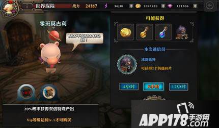 1、每位玩家都可以探索一块属于自己的世界版图,版图分为很多个区域,玩家初次探险时必须战胜该地区的守关BOSS以获得探险资格,击败首领后便可以派遣自己的英雄持续对该区域进行探索了,探险结束可以获得探险英雄的碎片。