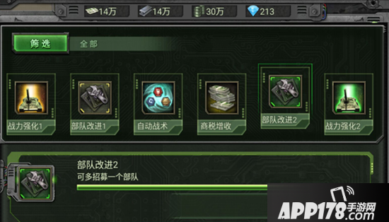 这个非常重要,每当你刷主线任务推图感到吃力的时候,请先研究研究黑科技。虽然有些科技看起来很鸡肋,但是大部分都是必不可少的。例如部队改进,战力强化等等,直接多一排兵或者一个部队。目前测试版本最多可上阵4个部队,每个部队最多可带4排士兵。基本上有了新科技都要第一时间研究完。