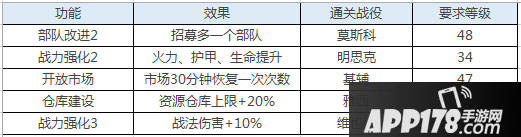 副本:部队改进2、开放市场、战力强化2为必开科技,请及时研发,37级开启红色装备后如货币富余可替换掉世界宝箱掉落的装备,因购买的红装带有技能(1颗星),推荐使用免费改造,洗至火力类技能。升至41级通关“维也纳”后可招募炮击型战车,推荐招募,此将为前期唯一的城市地形部队,下一个部队是神级军械BM-13喀秋莎,在70级之后。