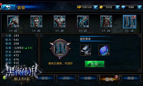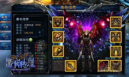 强化和升阶都能进一步使装备变得更加强大。受角色等级限制,强化等级逐级提升,装备强化到一定阶段,便达到当前满级状态,需要进阶来提升强化等级,获取更高战斗力。《黑夜传说》贴心保留强化效果,即使替换装备也能全部保留。升阶所需不同品质的陨铁、精钢石可在副本和各类商店刷到,辅以少量金币即可。
