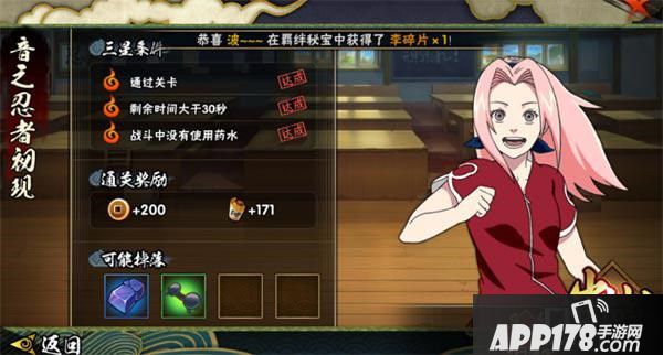 但还是需要在第二章节“白”的那关注意一下,还是蛮有难度的。其次都是操作很普通的挑战起来也没有什么难度。所以说闯关就是在前期的升级中最主要的一个环节了,再建议一点,就是闯关的时候建议使用可以触发剧情的忍者,如果触发剧情的忍者过不了先使用厉害一点的忍者过。
