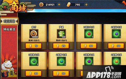 商城也是获得铜币的一个重要途径,这里普通玩家每日只可以购买一次铜币,花费10金币换取1W铜币。