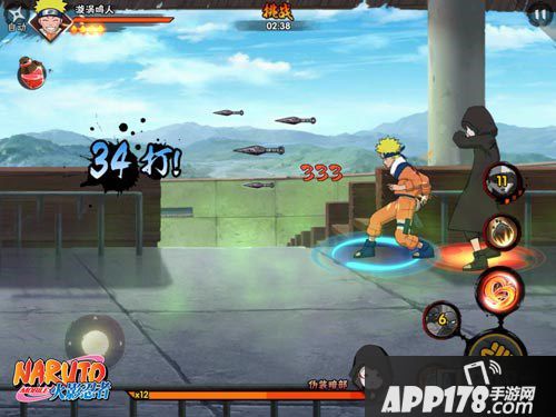 一般前两个技能使用之后就到了最后BOSS了,BOSS的伤害当然比前面的小兵高很多,在自身并不占绝对优势的情况下,使用镰鼬转转舞是比较明智的决定,它可以在15秒内防御提高,同时它还可以给目标造成高伤害。这个技能我们可以看到它也是一个大范围的攻击技能,距离boss远一点在保持一定距离的情况下使用,能够保证自己不受伤害并且在使用完后连续使用后续忍者技能赢得时间。