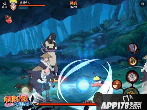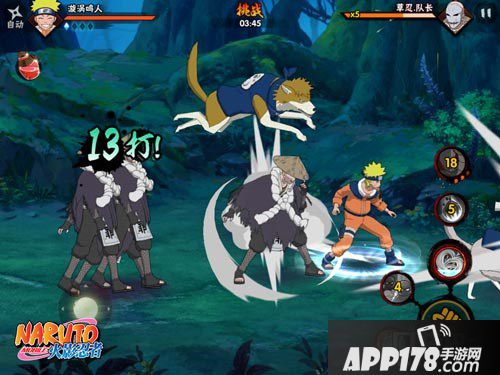 在一关中,前面的小兵都不算太难,小编使用的鸣人,主要是靠螺旋丸的大范围攻击扫除敌人,加之通灵兽忍犬的大军技能,基本轻松通过前面的小兵。