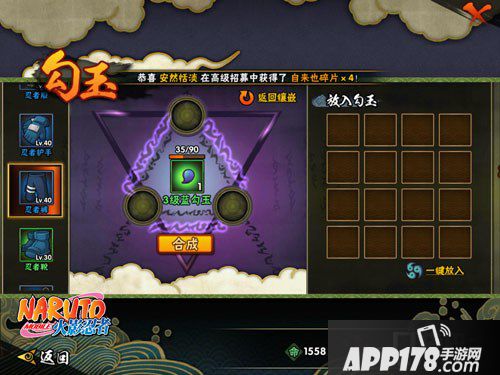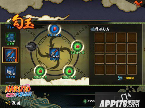 2级青勾玉:忍者服上镶嵌的勾玉,攻击+38,防御+10