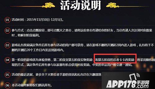 如图所示,若幸运中奖会在第五阶段获得忍者卡卡西,也就是公测免费获得忍者卡卡西,小伙伴们还不快行动起来参加传递火之意志活动吗?