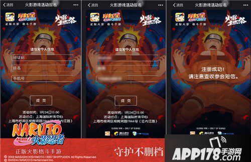 点击微信公共号活动,打开后选择一张你最喜欢的忍者开场动画发送给鸣人,就会随机挑选幸运儿发放重燃祭狂欢庆典门票哟。