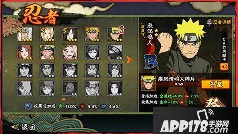 漩涡鸣人【疾风传】可以说是B级忍者中较强的忍者,各方面表现也都在B级忍者中属于中上层。其普攻连A总共可以分为4段,第4段会向前位移约1个身位并将敌人击飞。
