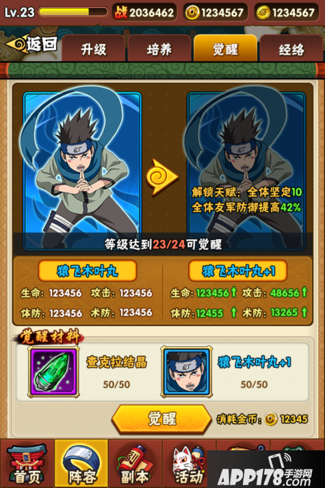 当卡牌到达一定等级后可以通过觉醒的方式完成大幅度的基础属性提升。觉醒时需要大量的辅助材料,而这些材料由游戏内的各个系统产出。