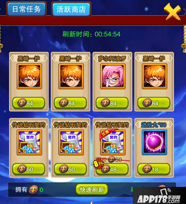 完成日常任务可以获得活跃值,活跃值可以开宝箱获得活跃币,活跃币可以用来购买死神和道具哦。