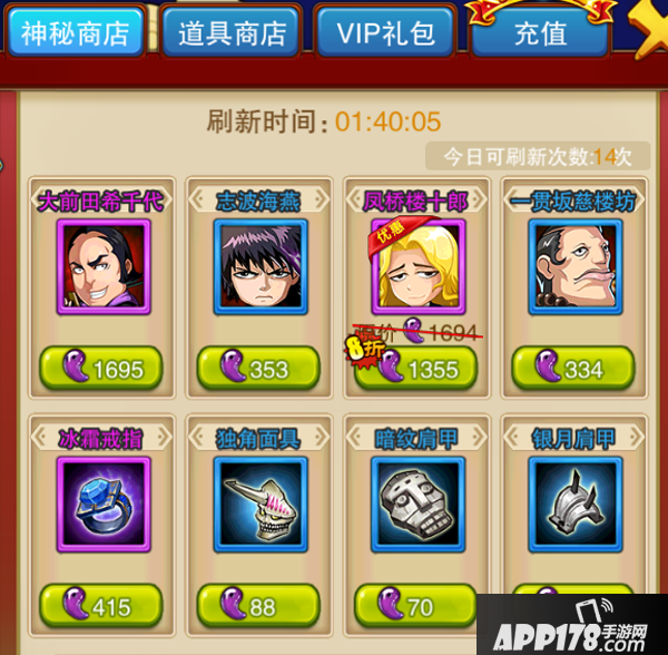 魂玉可在神秘商店购买装备和死神人物。是获得人物和装备的重要来源之一。