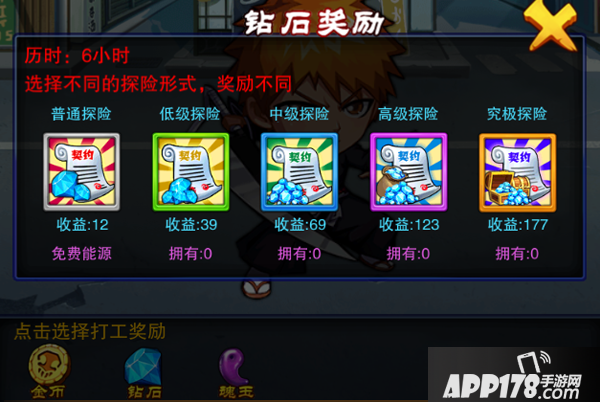 点开打工地点可以选择金币、钻石、魂玉其中一项奖励。