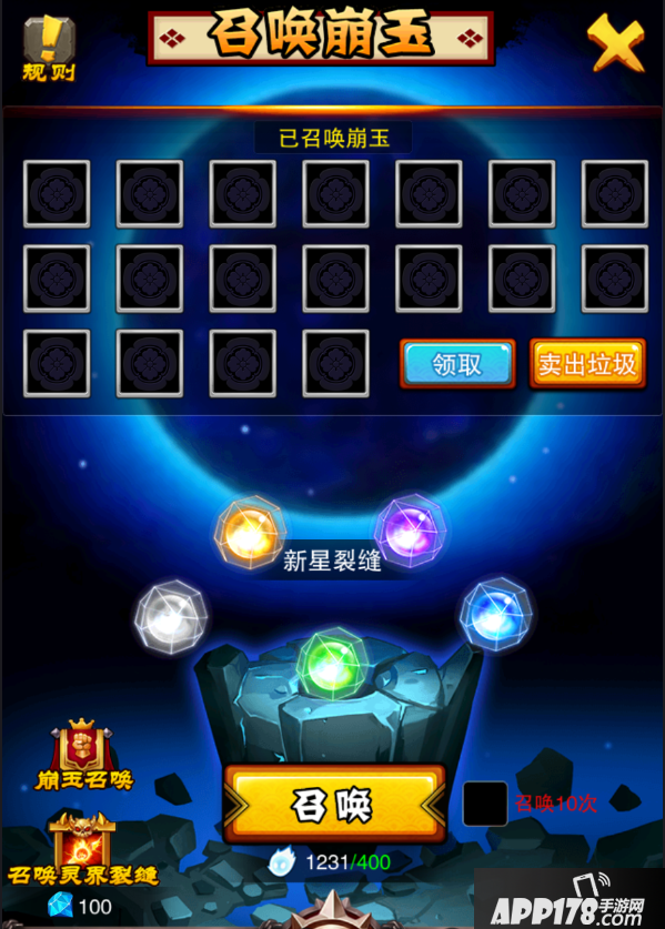 在这里,可以消耗灵石获得崩玉哦,每次召唤都是随机获得的~