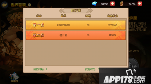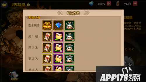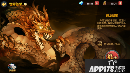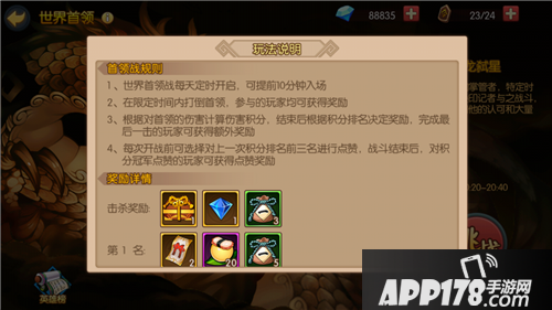 1、世界首领战每天20: 20—20: 40开放,可提前10分钟入场。