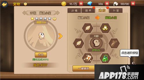 宠物的培养主要分为三个部分,喂养、进阶、升星、