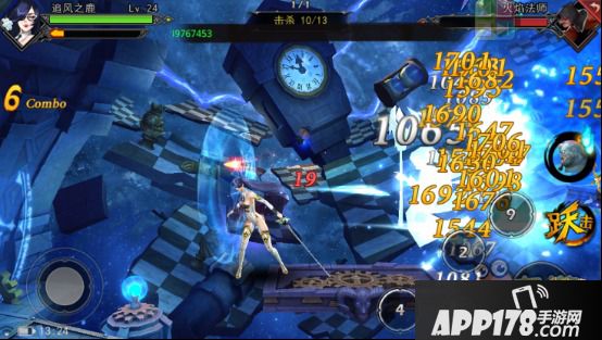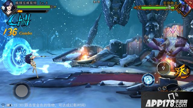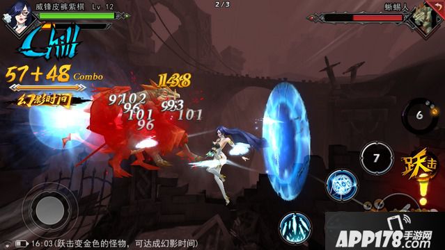 除了操作简单、连招顺畅这些特点之外,游戏的“幻影时间”是其最大的亮点。关卡中的精英怪物在蓄力攻击时都会变成金色并出现叹号,玩家只需点击“跃击”即可击飞敌人,同时进入幻影时间。在此时间内,游戏的空间场景将会黑化,音乐节奏变得更快,更重要的是所有技能 CD 重置,玩家可以打出双倍的连击数,伤害也会有所增加。
