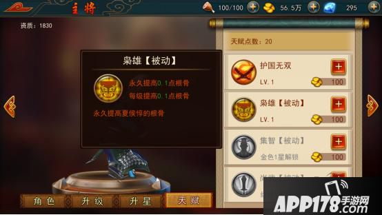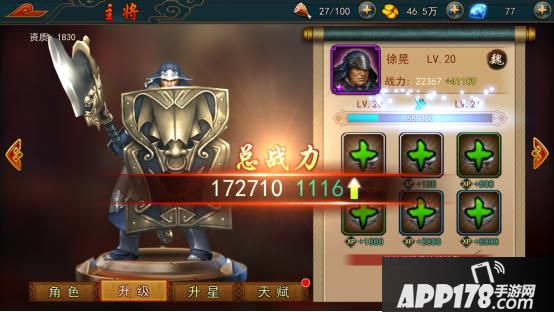 在玩家战力不足,无法通关时,玩家这时非常需要通过提升主将属性来提升自己战力。打开主将属性的页面我们可以看到,玩家可以通过等级提升、资质提升、星级和天赋等途径来提升主将属性。主将等级不同战力不同,同一主将每次升级都会有属性成长,随着等级提升,主将积累的属性越多。资质越高属性越高,同一主将每次升级带来的属性提升越高。但不同主将资质不同,且资质不可改变,所以越高资质的主将,属性成长空间越大哦!偷偷告诉大家,15位主将中浑身是胆的赵子龙资质最高哦!