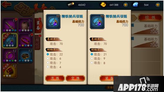 不用担心,“交换”按钮,可以交换两件装备的附加属性,再也不用一条一条的重新洗练了。