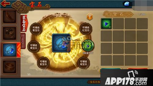 宝石共有青、黄、紫、绿、蓝、红六种宝石,均可以镶嵌在装备或者神兽上。