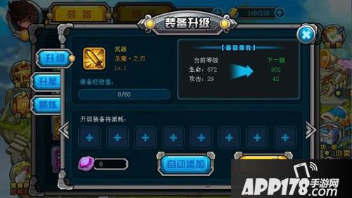 装备升级可以带来更强大的属性,有多余的装备别忘了用来升级强化哦。