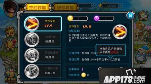 技能分主动跟被动两种类型,分别对应普通关卡跟精英关卡S级通关哦。