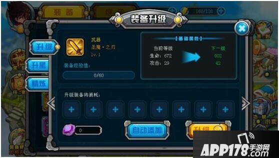 装备升级可以带来更强大的属性,有多余的装备别忘了用来升级强化哦。