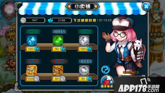 小卖铺中出售各种颜色的1-3级宝石,这么丰富的供货量,还有什么好担心的呢?唯一要担心的是你的腰包里钻石是否充裕。神神叨叨的小编要提一下,一定要刷新商品,多刷几次,买买买,买到剁手。