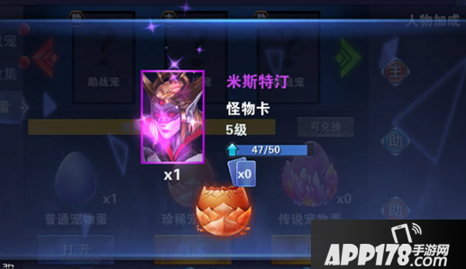 除了打怪收集,勇士们还可以通过一条比较简单的方法来收集宠物,那就是开宠物蛋。《绝对领域极战纪》中,开宠物蛋可以获得两种卡片,一种是宠物卡,还有一种便是宠物卡了。通过开宠物蛋有很大概率同时获得多张怪物卡,可以一下子给怪物提升很级,获得的属性加成非常可观。宠物蛋可以使用钻石购买,也可以挑战宠物洞穴或从限时活动中获得。