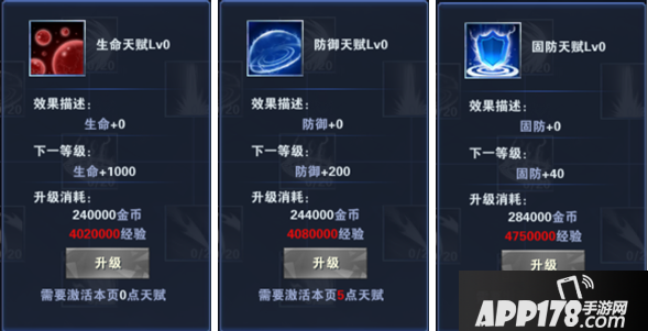 防御天赋:每提升一级增加200防御;