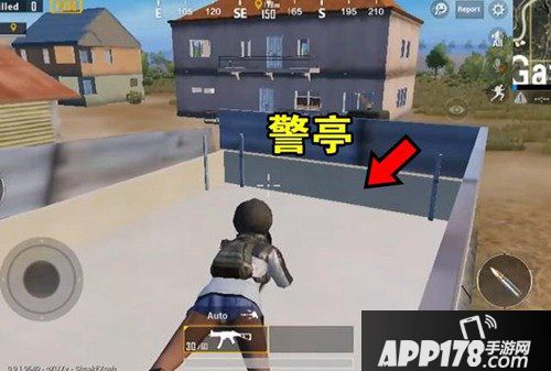 保安亭的上面有一圈矮墙,玩家可以躲在矮墙后面埋伏敌人。如果周边没有高点,那么玩家就不用担心被高点的敌人偷袭。保安亭上面可以通过载具跳到门板上面,再从门板爬上去。