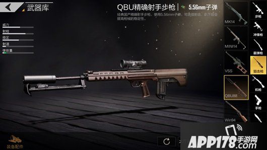QBU跟Mini14的几乎没有什么区别,相同的子弹口径,相同的配件,唯一的区别就是伤害。QBU的伤害会比Mini14稍微高一些,但是差距不大。不过两把枪声音有些不同,所以有些玩家可能不习惯QBU的声音。