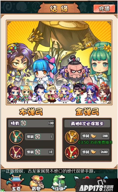 招募系统里有四种招募选项,分别是结缘符招募1次,结缘符招募10次,元宝招募1次,元宝招募10次。