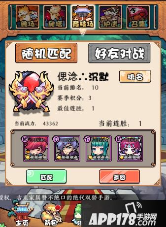 点击右边NPC进入编队和匹配界面,在界面上可以看到自己的排名、积分和连胜状态。