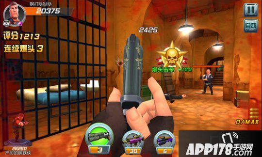 首先要提高自己的准确度,说白了就是手指的触屏的准确,准确度提高了也就能百发百中。接着想办法爆头,游戏最大的特点就是简单炫酷爆头了,所以尽量每个敌人都爆头,其实游戏的精准度没那么大,只要概率瞄准都能都爆头,连续爆头还有额外的加分的。还有营救看见的每一个人质。每一个人质可以增加+300分。