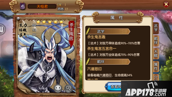 天赋走向:命格2、铁壁3、藴气化劲、气势3、破空飞灭、虚绝真玄、轮回,标准的防御走向,可以放在前排。