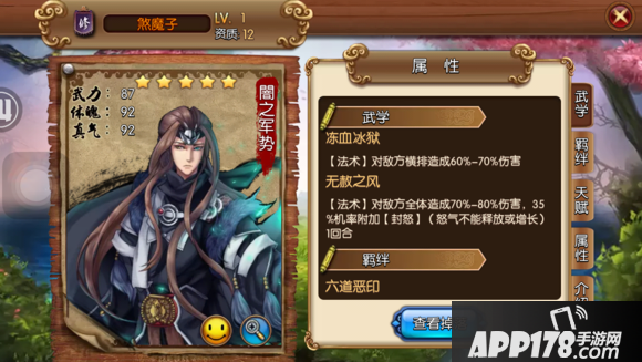 评语:甲子名帖第一邪,强攻型的13资质英雄,防御方面也有兼顾,非常不错的英雄,而且也比较好拿,二天60万战力包可以拿到。