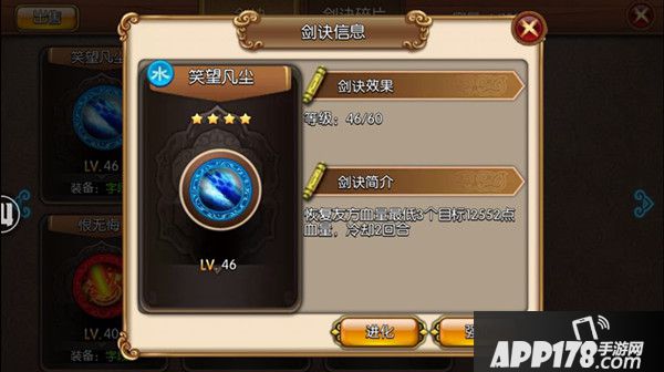 11.主角经脉必升级.不然打副本会被辗压很惨 12.剑诀系统 新手优先选 水诀 尽量单升直上(要靠主角打天下) 40等升级材料 必须有300点 游历值换取剑诀书 60等升级材料 要有两本 满点 水诀 + 2000点游历值换取剑诀书 效果方面: 左边神奇补 右边神奇冰 说多狂就有多狂 (XD....借用台词) 主角本身会有一招打三人的技能 后期主角+5以后会有 无视对方20%防御的天赋(+8) 13.主角的 牵绊武器+攻击%数 跟 牵绊卷+HP%数 要先升级 (先坦住)